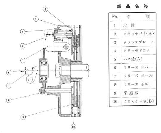以上にクラッチバネ A には加わらず、クラッチプレート B には常にクラッチ
