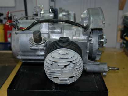 2.まな板の鯉 ★エンジンの改造はピストンの交換、シリンダーのボーリングが必要なためエンジンを車体より取りおろす。
