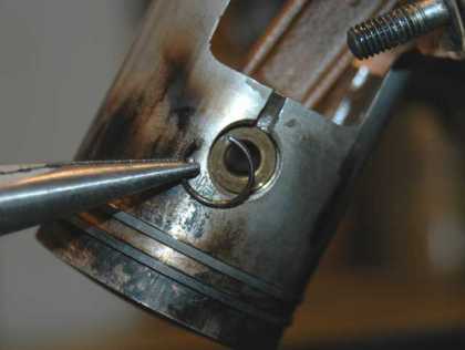 4.ピストンを外す ★ピストンピン両側についているC型クリップのどちらかを外す。外すときクリップが飛びやすいので気を付けること。