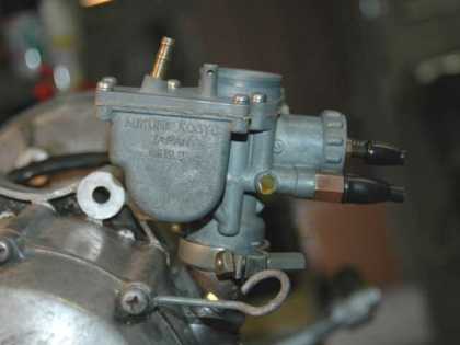 8.キャブレターの改造 ★オリジナルのキャブレターでは吸気量が不足する。同じダウンドラフト方式のS301B型用を使う。
