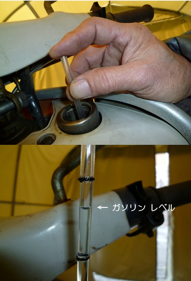 方法はいくつか有るが測定用の燃料棒(Dipstick)の作り方を紹介する。