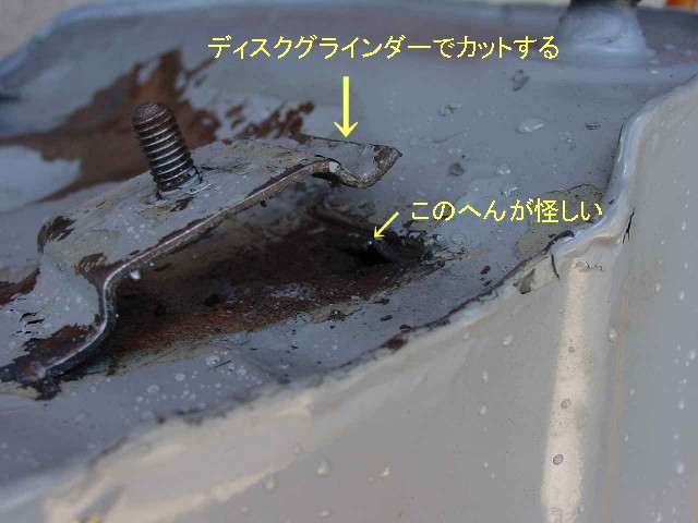 ★漏れているところが解ったらボルト(スタッド)の付いている部分を切断用ディスクグラインダーでカットする。