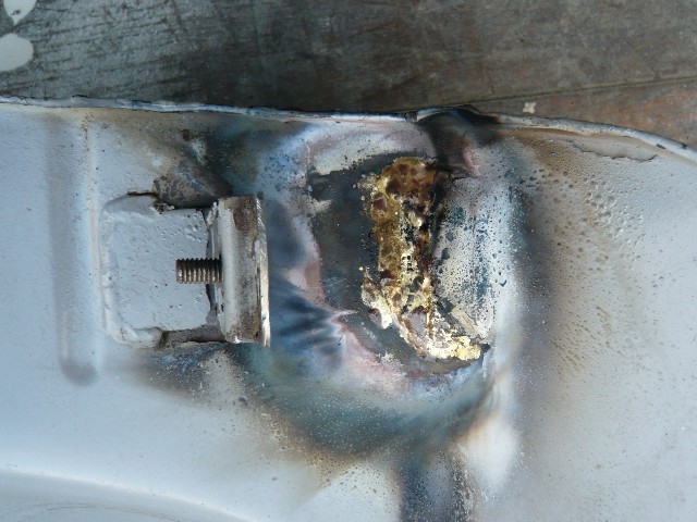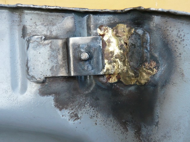 ★ディスクグラインダーでカットした部分を元に戻して同じく黄銅ろう棒で溶接する。 ★溶接後、もう一度漏れのテストを行う。 |