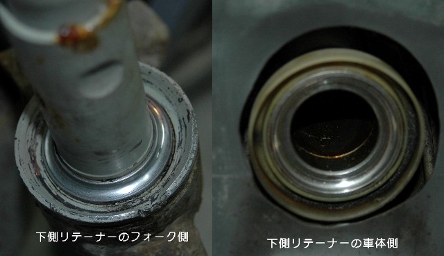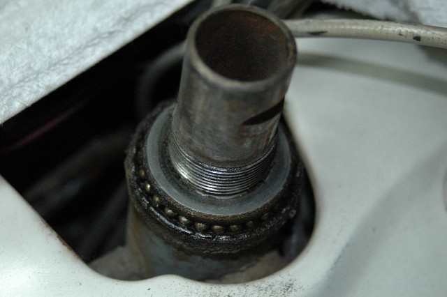 長い間使っているとフォークの上、下にあるベアリングのグリースが