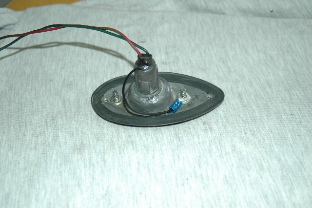 | 3.指示器の修理 | ★指示器のソケット部のカシメが緩んでアースが不完全になっていることがこの原因であるがこの部分の半田付け修理は出来ないため以下の方法を取る。 ★ホームセンターで 3 X 8 mm のタッピングビスを買ってくる。 ★指示器を取り外し写真の位置に 2.4mm の穴をドリルで開け、タッピング ビスをねじ込む |