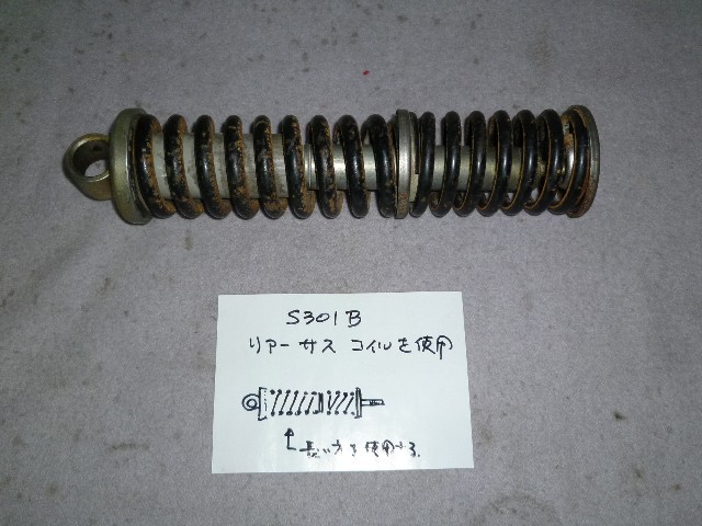 ★S301B型、リアーサスを分解し太長い方のコイルスプリングを使用する。他には何もいらない。 ★分解の方法は、ここを参照。
