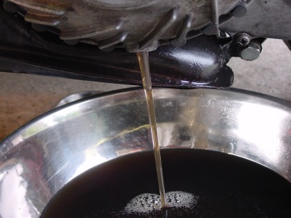 ★上下2本のボルト及びオイルタンクのキャップを外しオイルを抜く。 ★トルコンを左右に手回ししながら、あるいは車体を傾けながら行うと完全に抜ける。