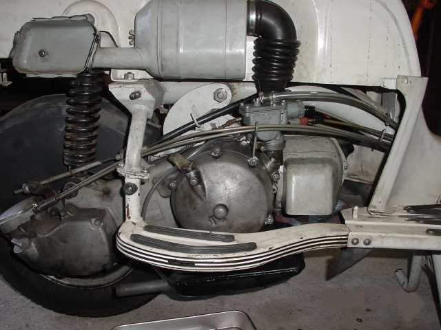 2.まな板の鯉 ★エンジンの改造はピストンの交換、シリンダーのボーリングが必要なためエンジンを車体より取りおろす。