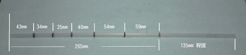 | 2.素材の調達 | ★ホームセンターでABS(透明)製のパイプ、内径 4.0mm, 外径 6.0mm 長さ1m のものを購入する。 ★必要な長さは40cmなので2本のゲージが作れる。 |