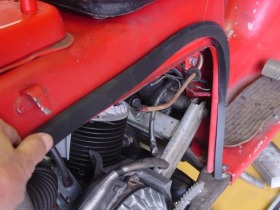 ★左右のサイドカバーの回りに付いているウエザーストリップは長く使っていると写真のように劣化してくる。