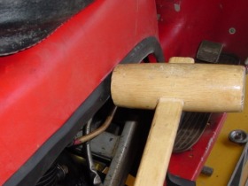 ★ゴムの表面を木ハンマーで軽く叩くとボディーに密着する。くれぐれも叩きすぎないように...