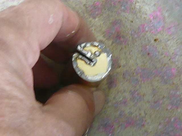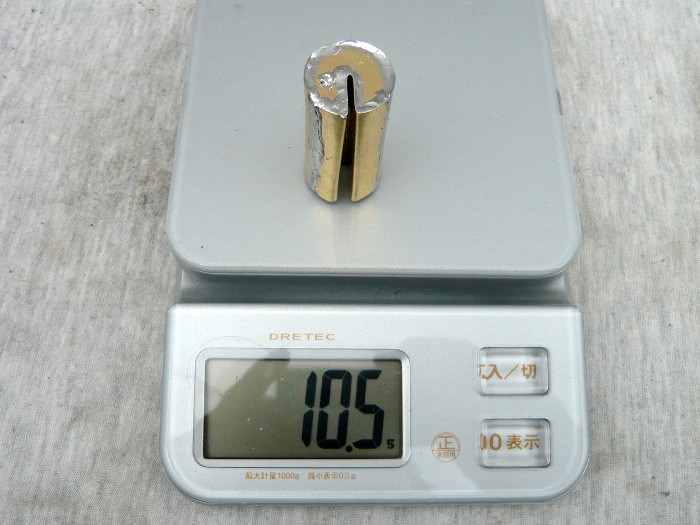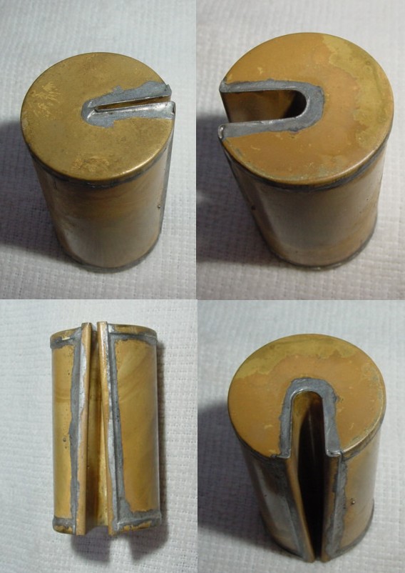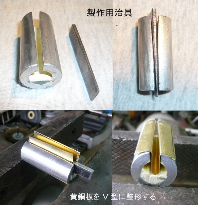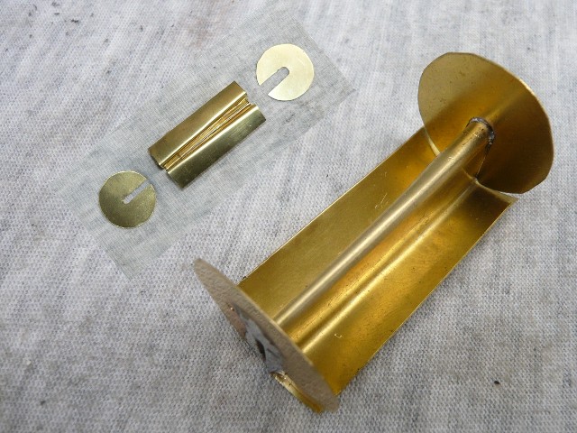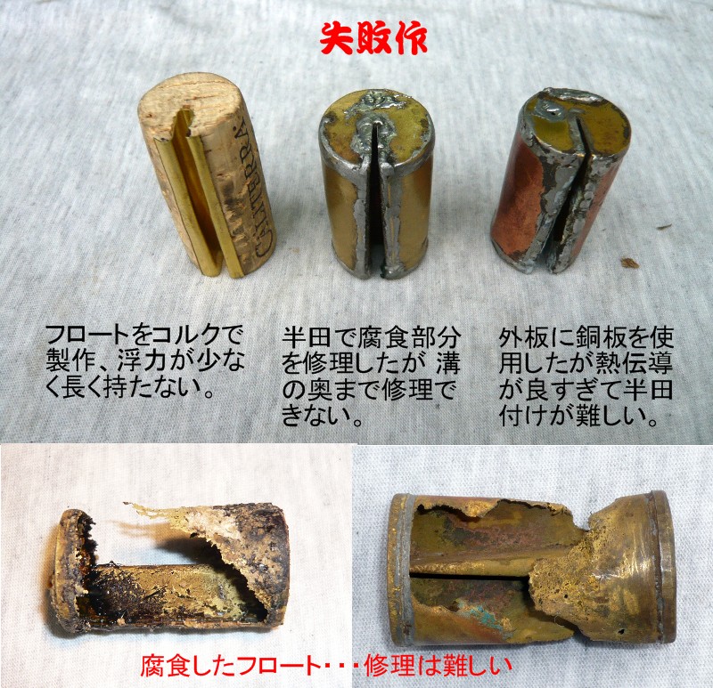 2.フロートはこんなもの ★直径22mm、長さ38mmの黄銅の薄板を半田付けしたもので中央にV型の切り込みがある。 ★見た目は綺麗で製作も簡単に見えるがいくつかの失敗作もある。