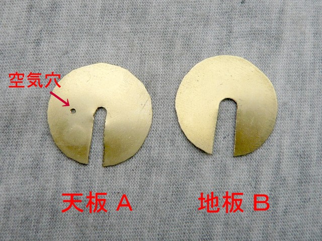 3.天、地、円盤をつくる ★0.3 mm 厚の黄銅板(久宝金属製作所)品番M560 を使う。
