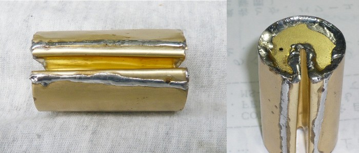7.半田付けをする ー 2 ★黄銅板の合わせ面を全て半田付けしたあと、余分な半田は除去し量を少なくする。