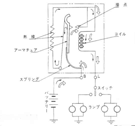 5.このように熱線電磁式ターンシグナル・ユニットは、ランプを流れる電流により作動