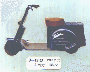 S-12 型 製造期間 : 1947.12 - 1948.5 生産台数 : 485 台 PX(進駐軍特設売店)納入車 SP-12 220 台を含む ENGINE : 4 CYCLE 135cc 2HP