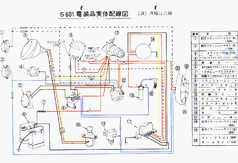 S-601A 型:スーパーフロー 製造期間 : 1959.5 - 1960.3 生産台数 : 16,770 台 ENGINE : 2 CYCLE 199cc 11HP 配線図 ラビットの概要へ戻る